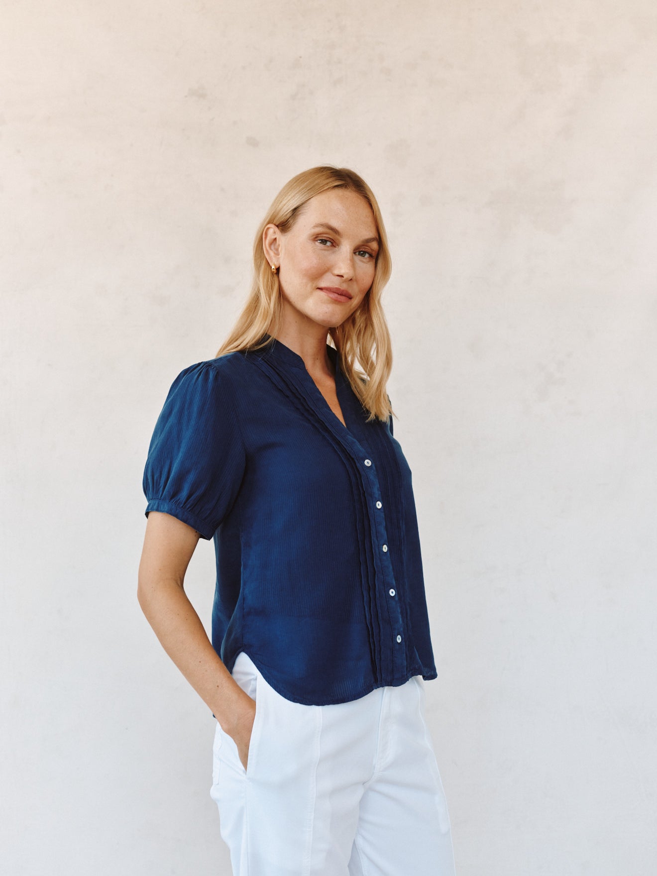 Bella Dahl Short Sleeve Pintuck Shirt Navy Dusk