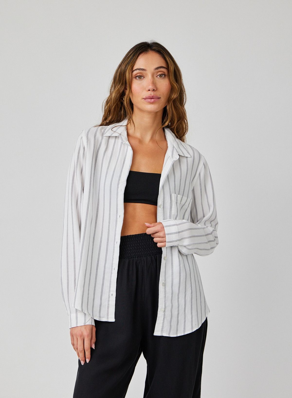 Nation Los Angeles Savanna Shirred Top Espresso Pinstripe