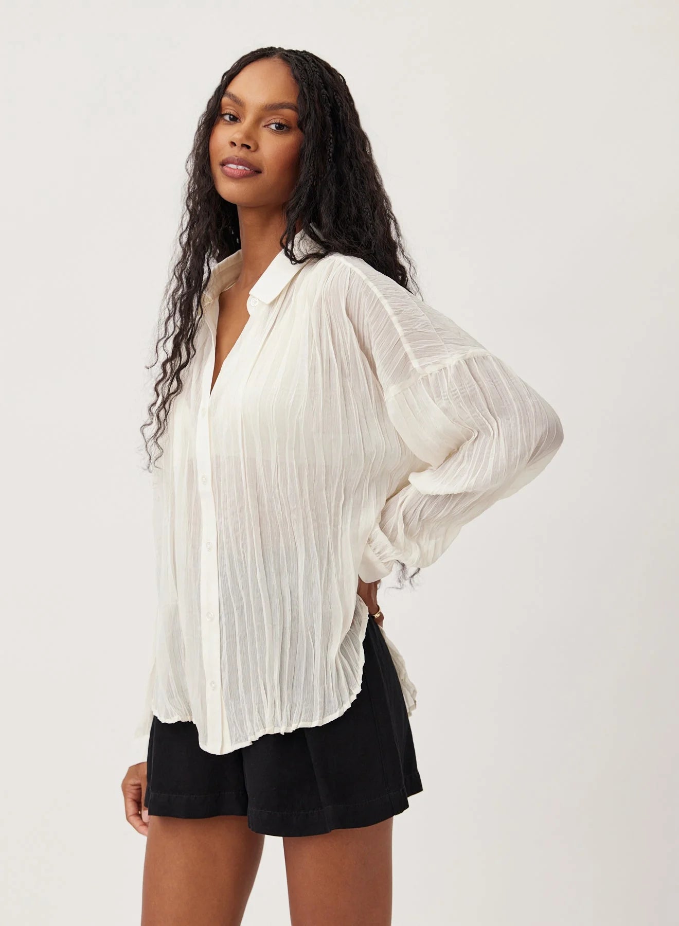 Bella Dahl 3/4 Bishop Sleeve Button Up Silver Leopard