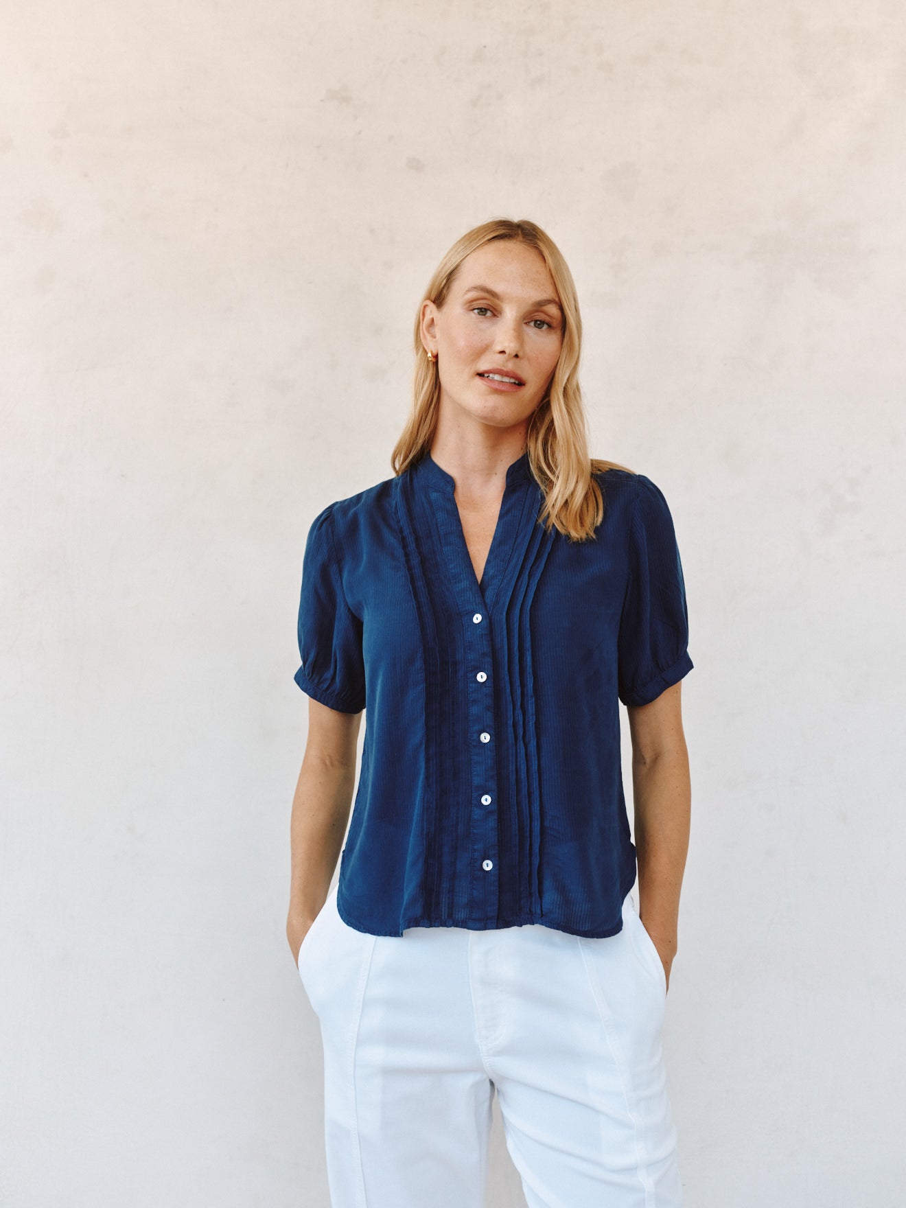Bella Dahl Short Sleeve Pintuck Shirt Navy Dusk