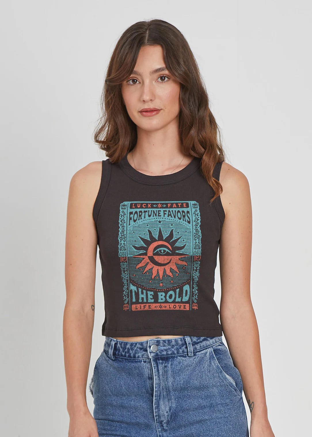 Fortune Card Ribbed Black Cropped Tank