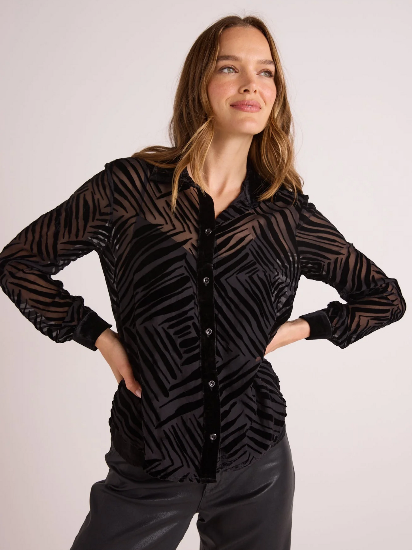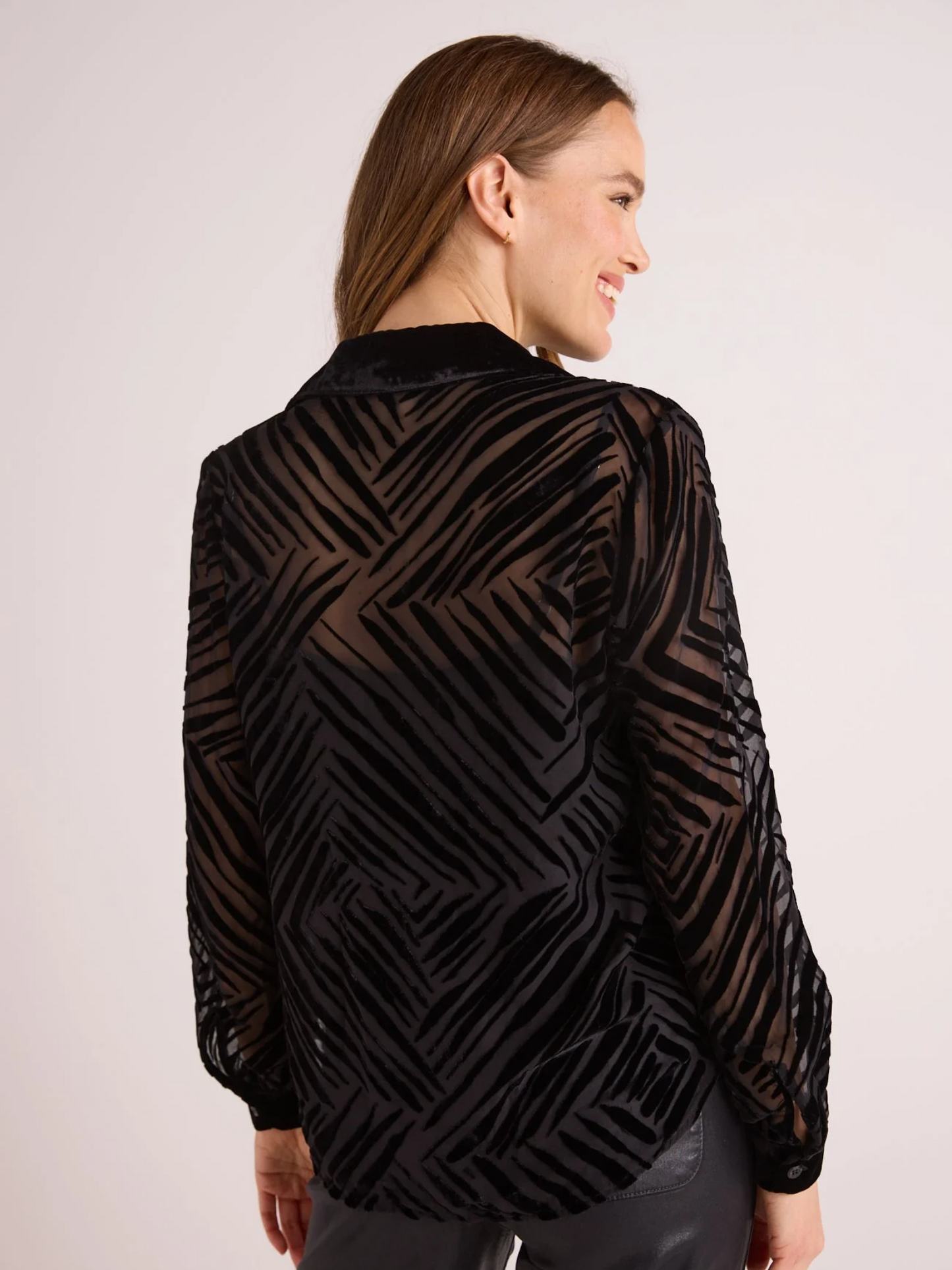 Bella Dahl Flowy Wide Collar Button Down Silver Distress Foil