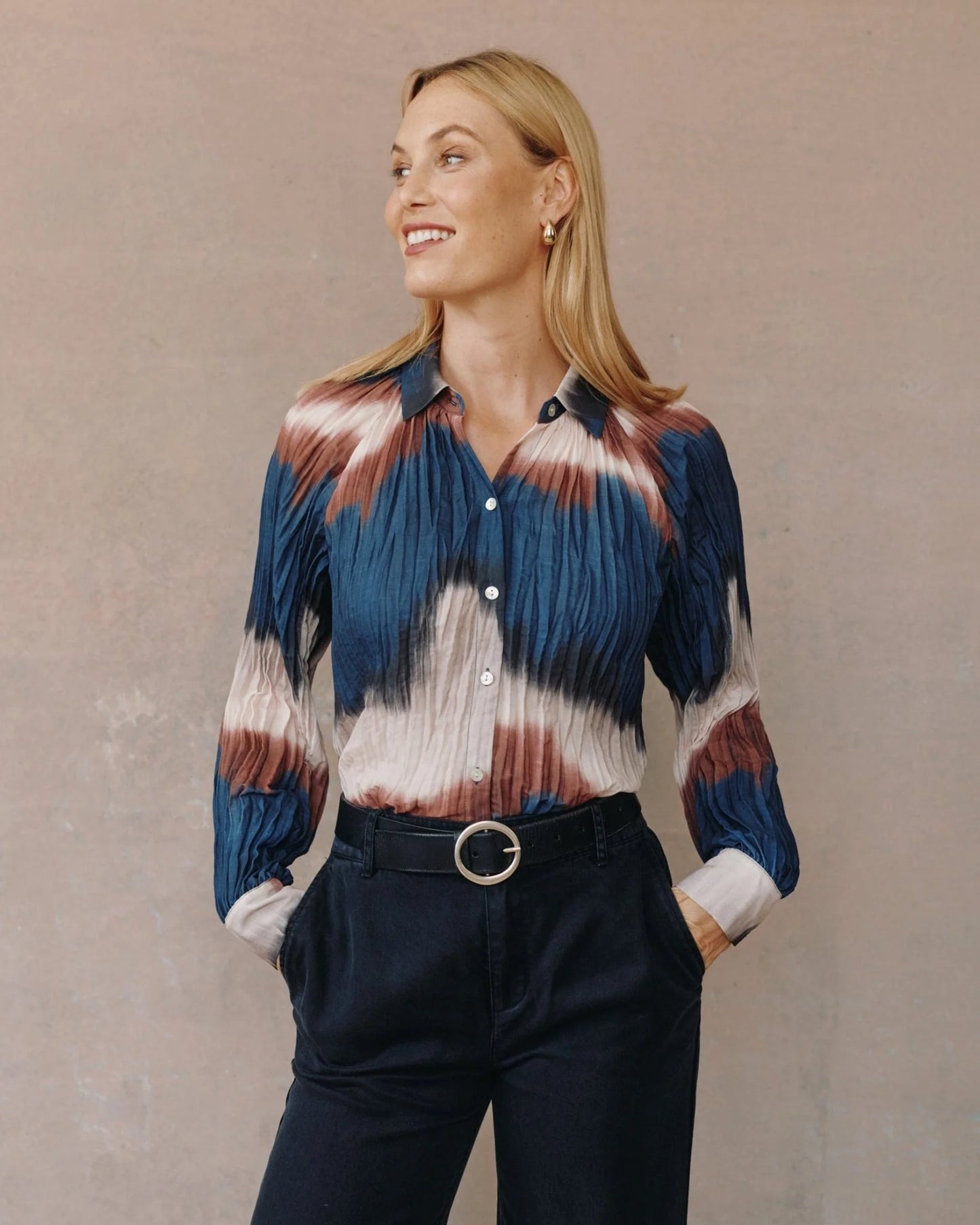 Bella Dahl Pleated Raglan Sleeve Shirt Midnight Tides Print