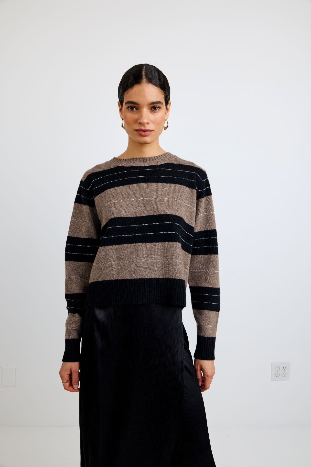 Bella Dahl Fitted Crew Sweater Frappe Stripe