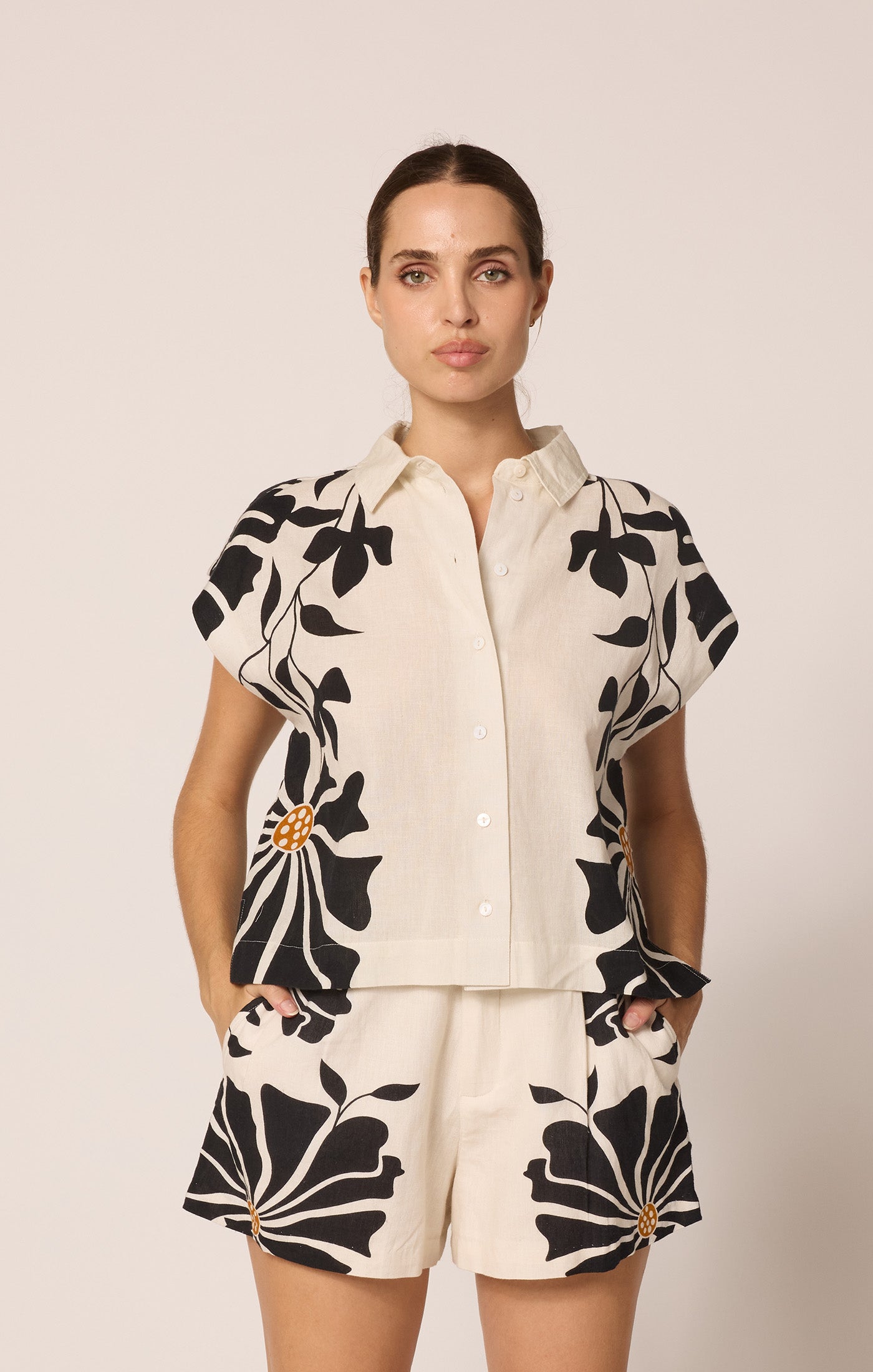 Ethically handmade in India from a dreamy cotton linen, the Selene Blouse combines comfort with style. Bra-friendly and featuring a flattering placed print, it’s perfect for an easy yet elevated throw-on-and-go look.