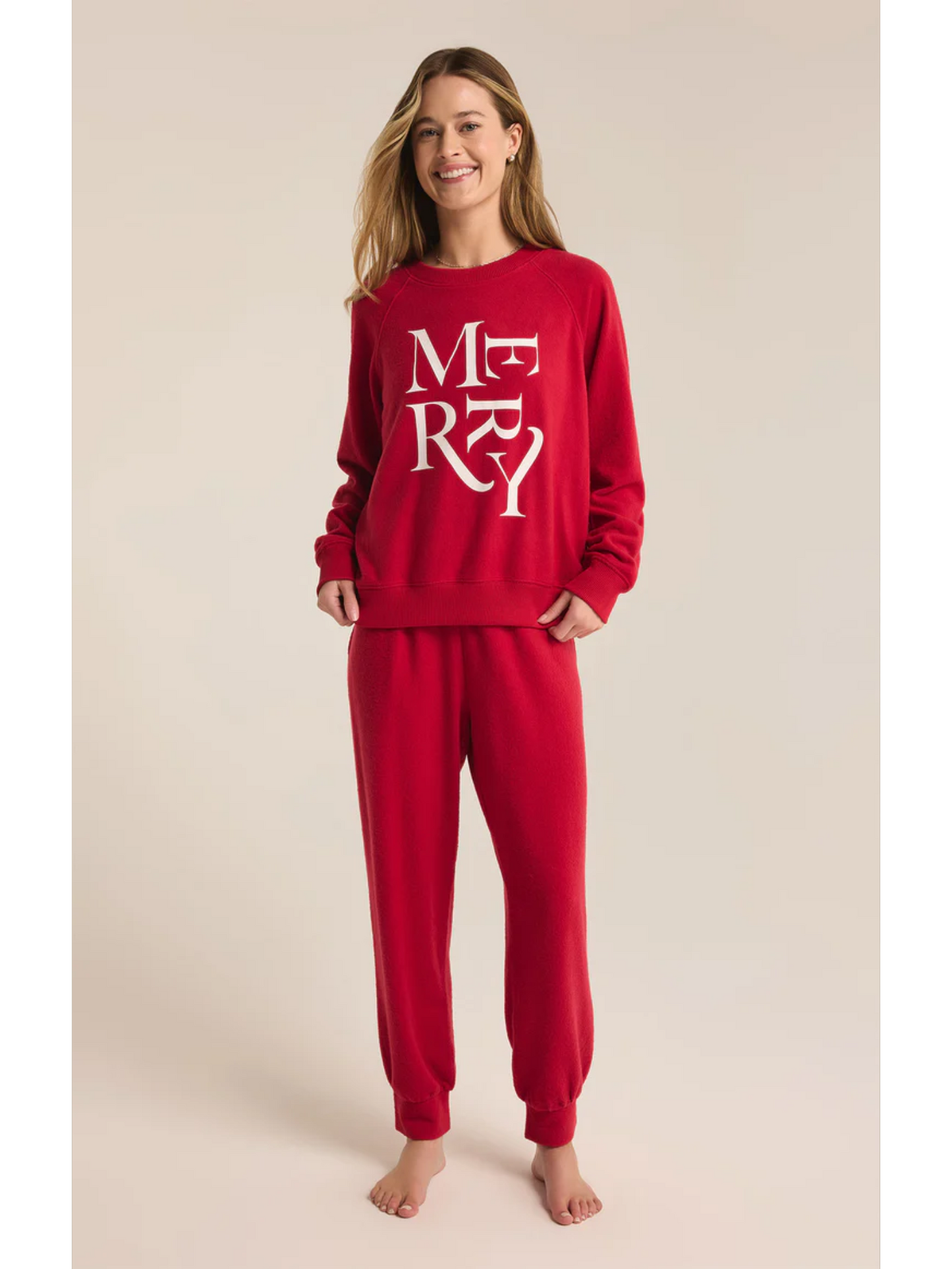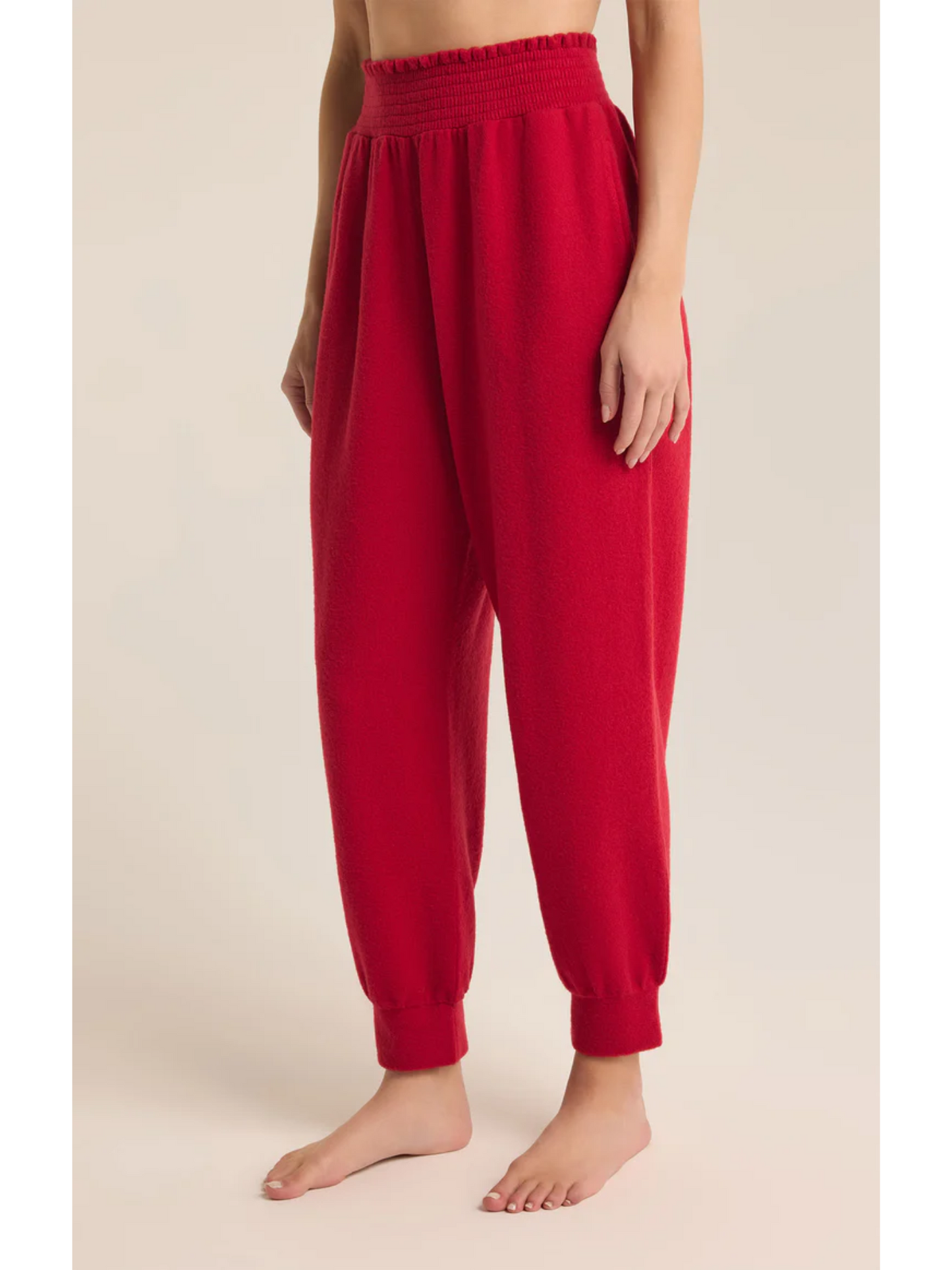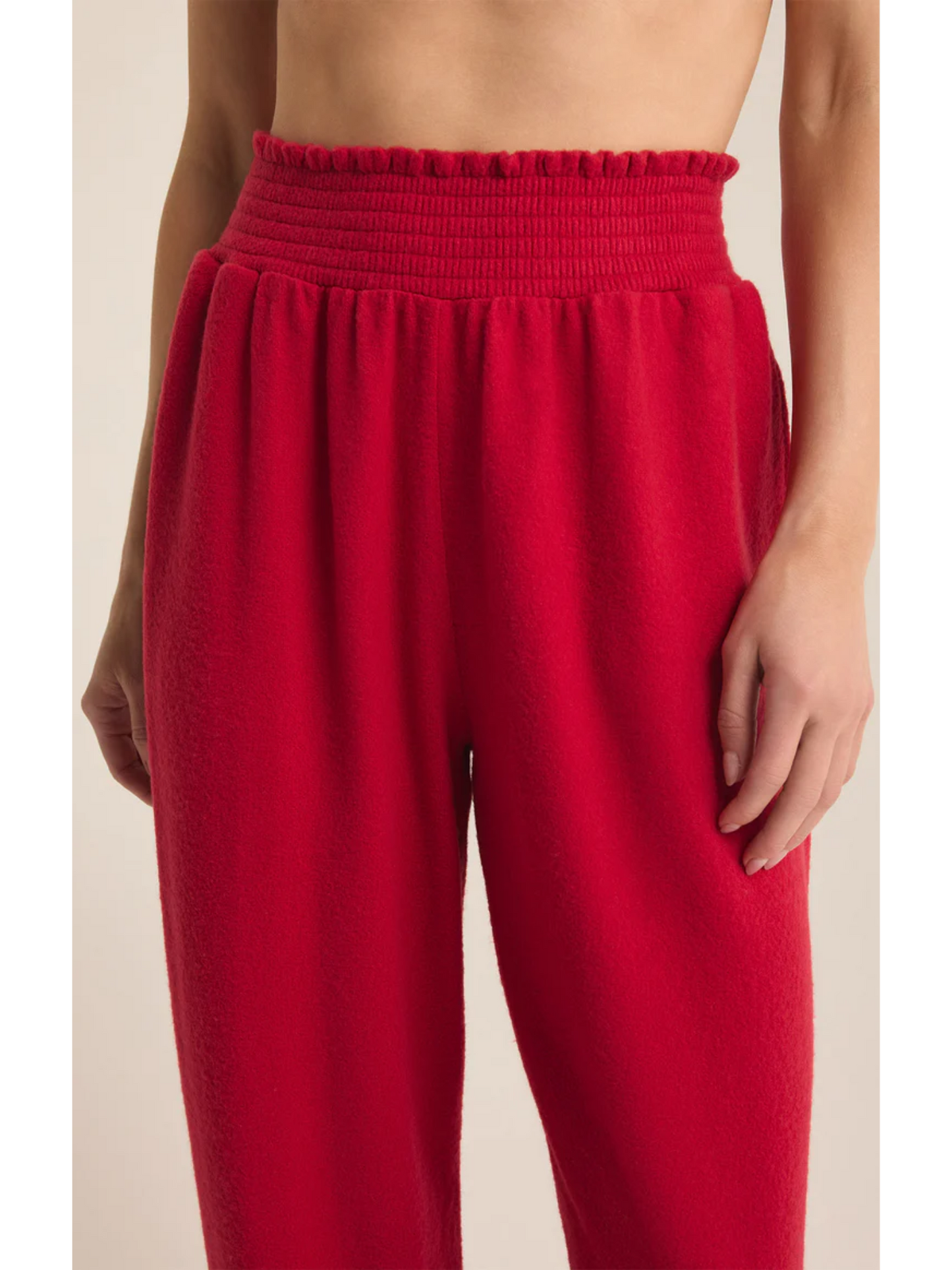 Regular price $48.00These high-rise pants, made from our Dream Cozy knit fabric, offer the perfect blend of comfort and style with an ankle-length cut and smocked waistband. The side seam pockets add a functional touch, making them ideal for lounging or festive outings. Pair with the matching Merry Sweatshirt.