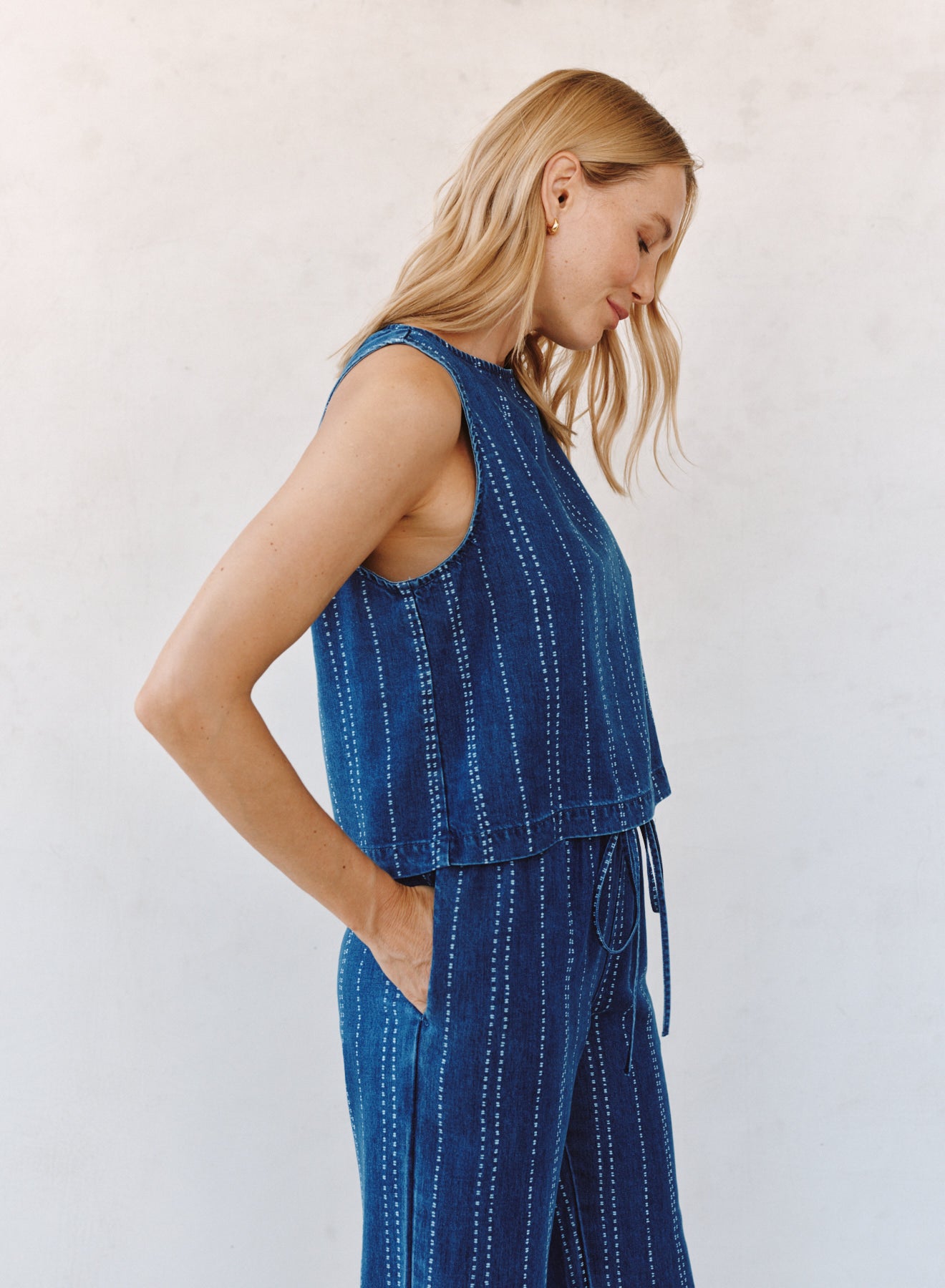 Bella Dahl Sleeveless Button Back Top Indigo Stripe
