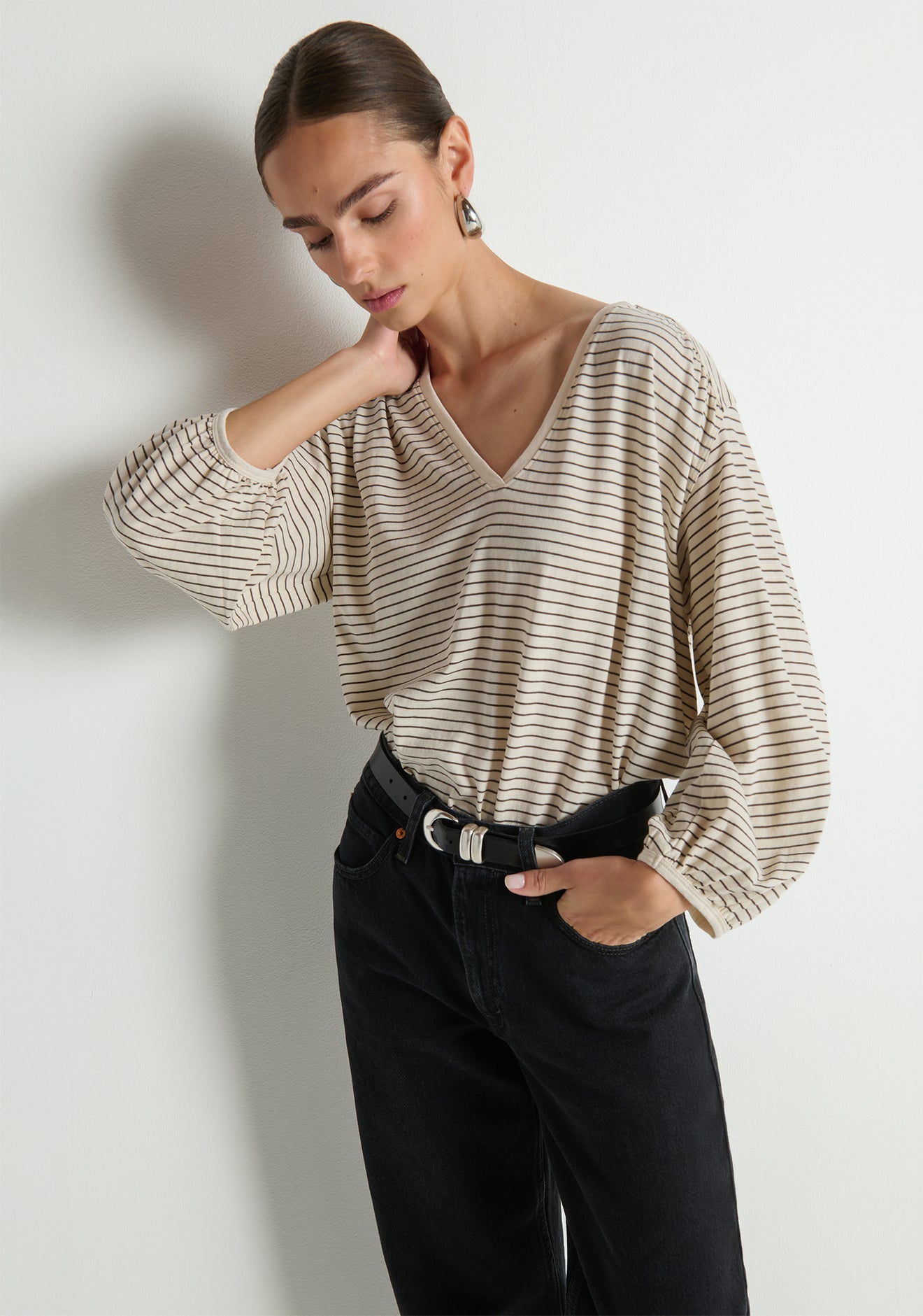 Nation Los Angeles Savanna Shirred Top Espresso Pinstripe