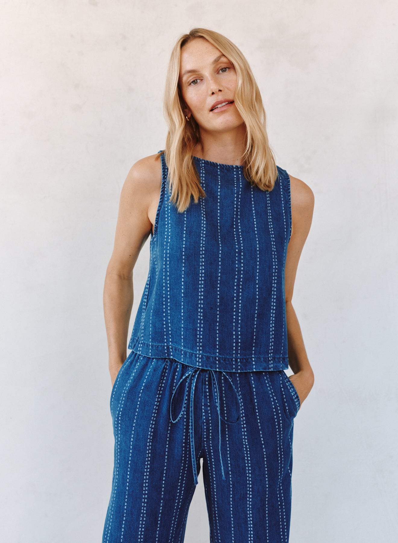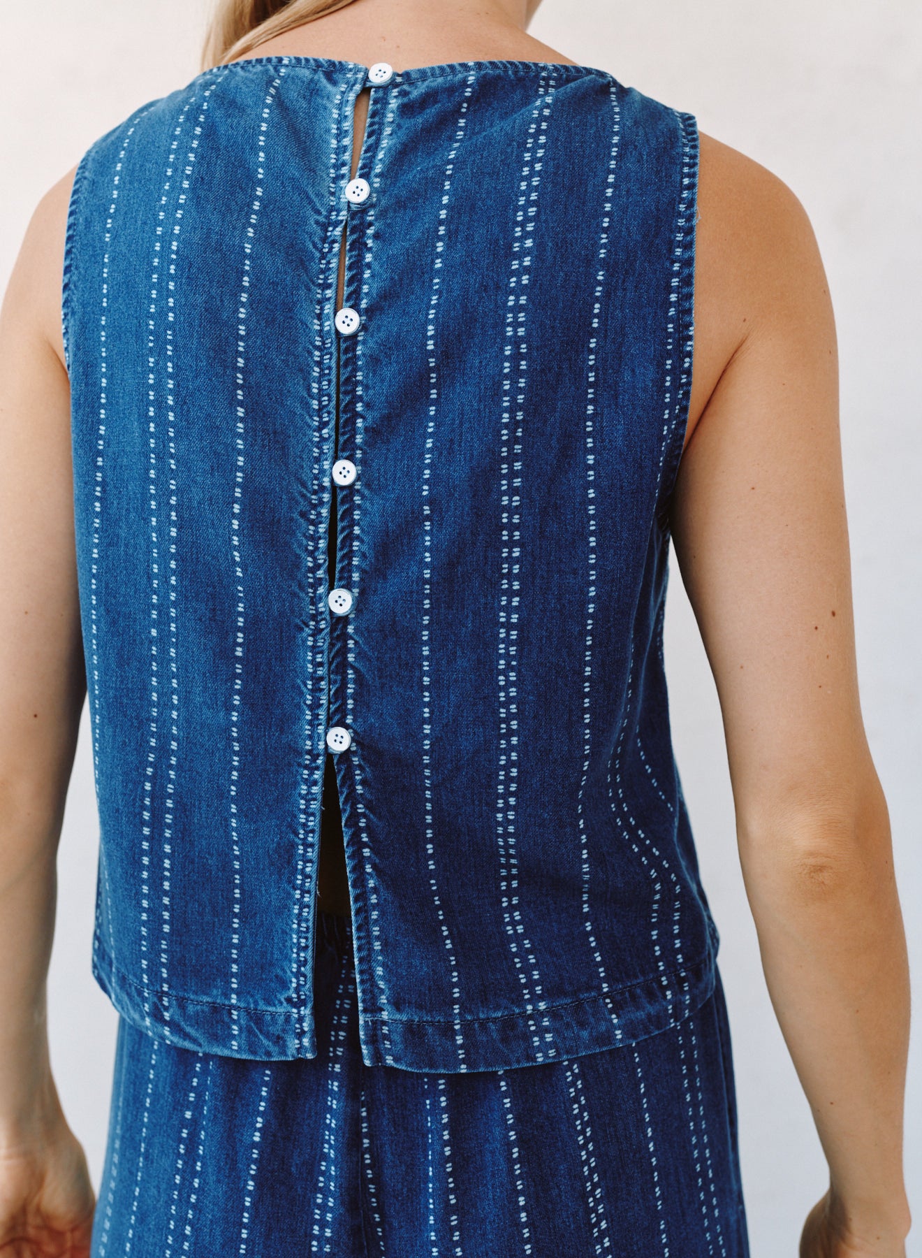 Bella Dahl Sleeveless Button Back Top Indigo Stripe