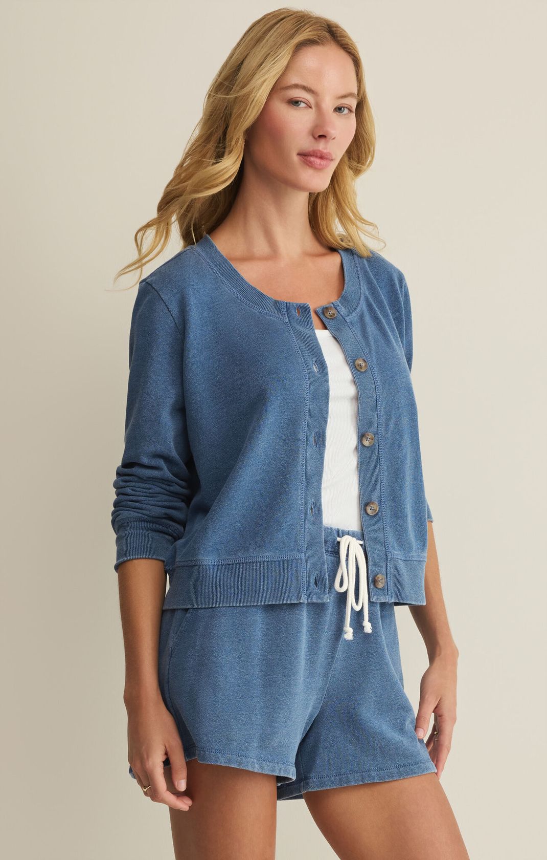 Z Supply Daily Knit Denim Cardigan Calypso Blue Indigo