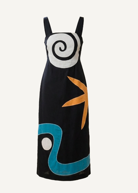 The Brie Midi Dress is a striking, handcrafted silhouette ethically made in India from a breathable blend of 85% cotton and 15% flax. Designed with a clean square neckline and wide shoulder straps for comfortable support, this fitted midi features smocked panels at the back for an adjustable, flattering fit. Bold embroidered appliqué adds an artisanal touch, while a hidden back zipper ensures a smooth, refined finish.